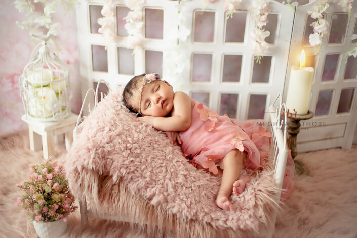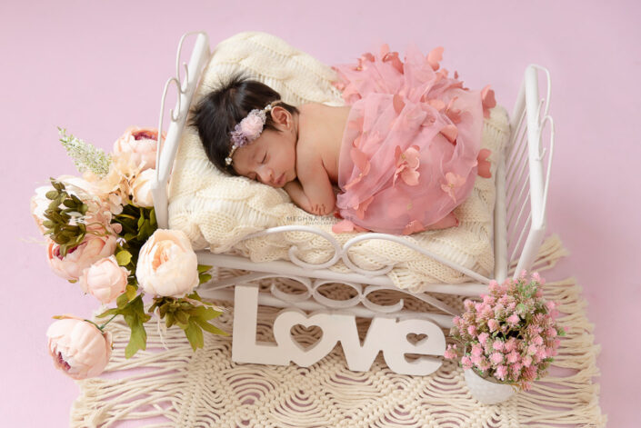 Baby Album – 4 Months Old Baby Girl Photoshoot Princesses Theme Flower Setup By Meghna Rathore Delhi