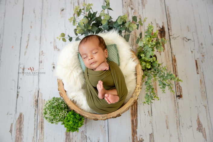 34 – Newborn Baby Photoshoot – Wooden Log Bowl Prop