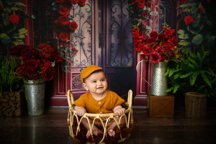 Baby Album – 5 Months Baby Girl Photoshoot in Barbie Theme, Portrait using various floral colors.