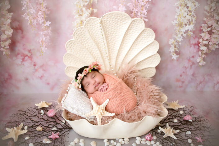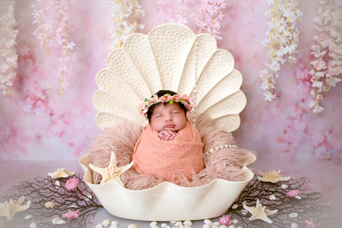 Baby Gallery – 3 Months Baby Girl Photoshoot Using Mermaid, Vintage Greens, Maroons and Blue Florals