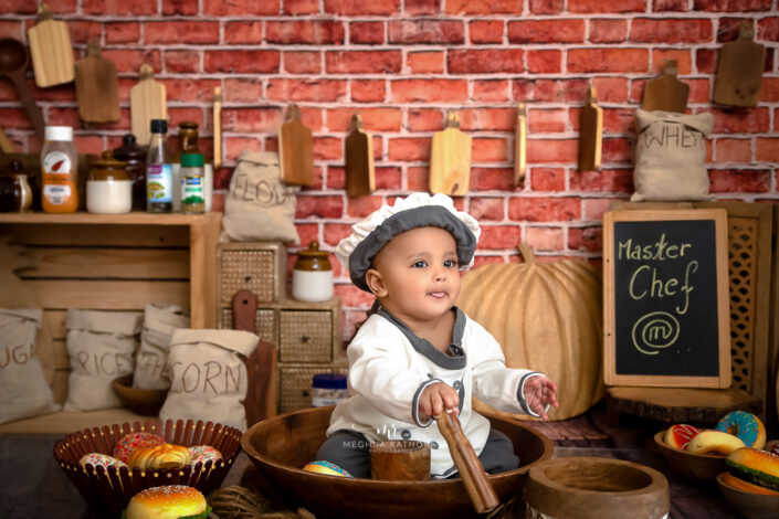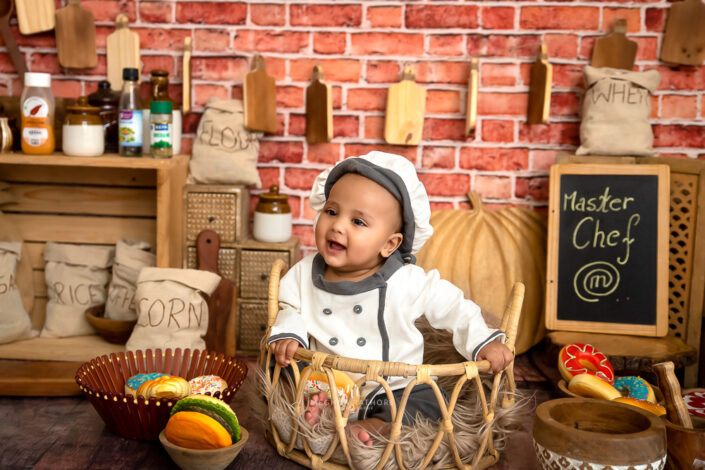 Baby Album – 5 Months Baby Photoshoot Including Portrait, Moon and Chef Themes