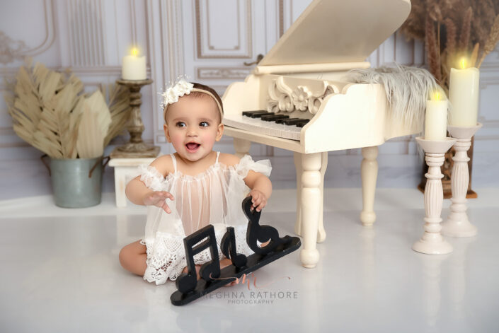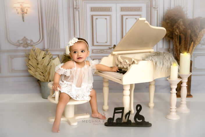 Kid Album – 1 Year Baby Girl Kid Pre Birthday Photoshoot Piano Theme Portrait By Meghna Delhi