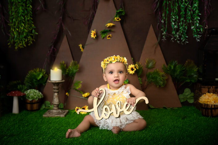 Baby Album – 5 Months Baby Girl Photoshoot in Barbie Theme, Portrait using various floral colors.
