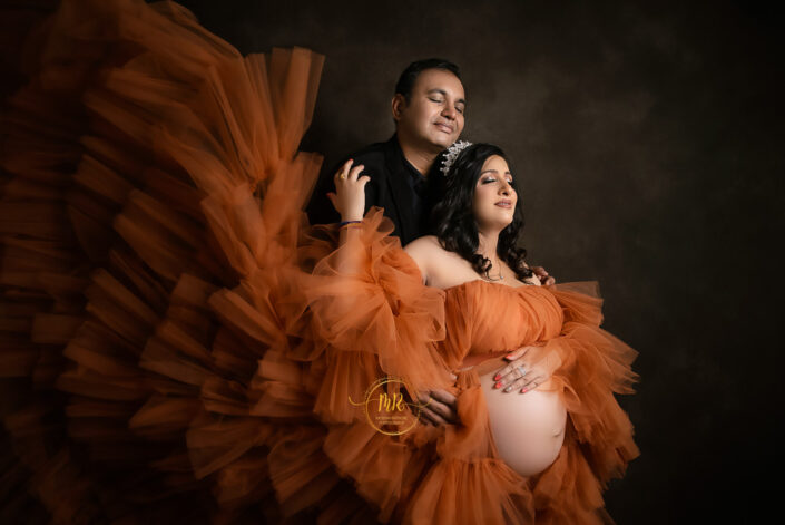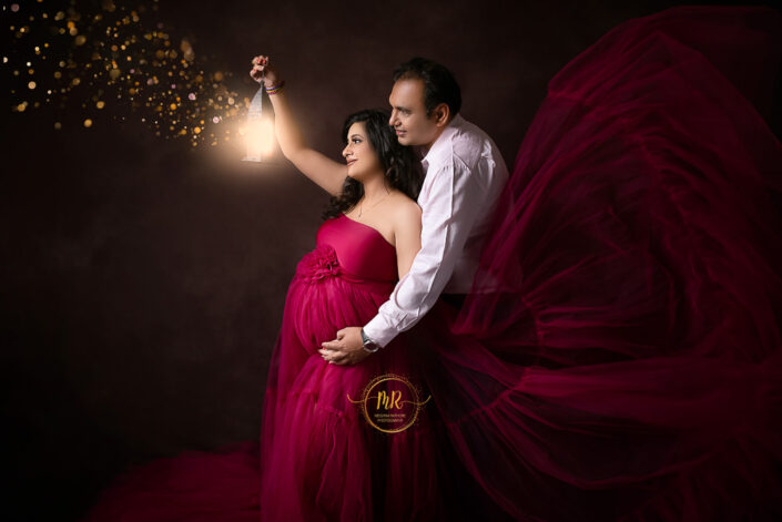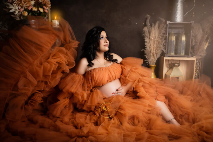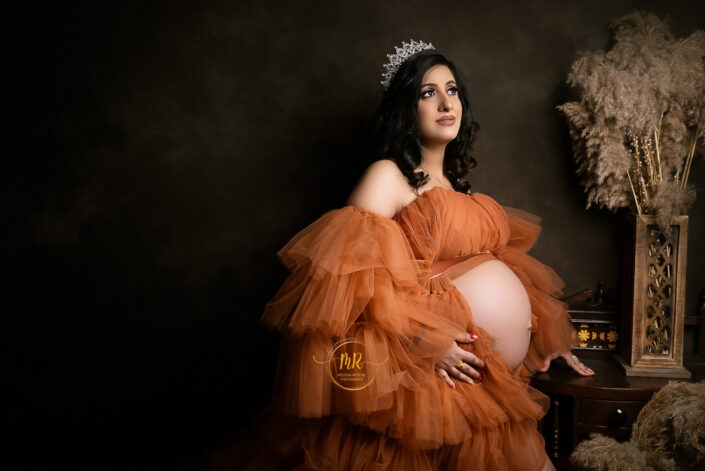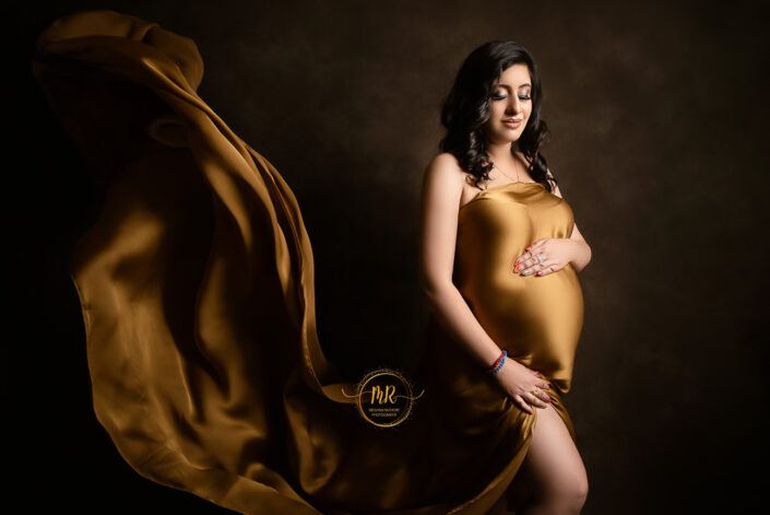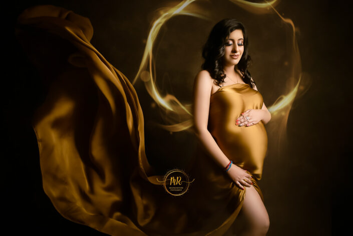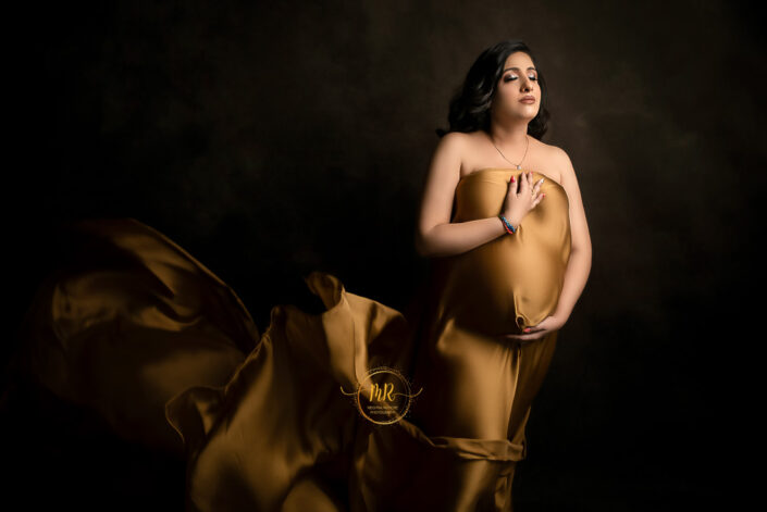 Maternity Gallery – Maternity Photoshoot in Rust, Hot Pink and Golden Drape Along With Many Artistic Edits.