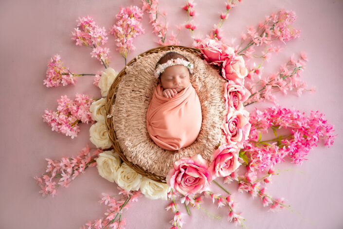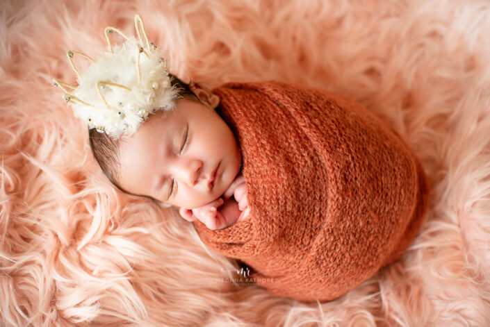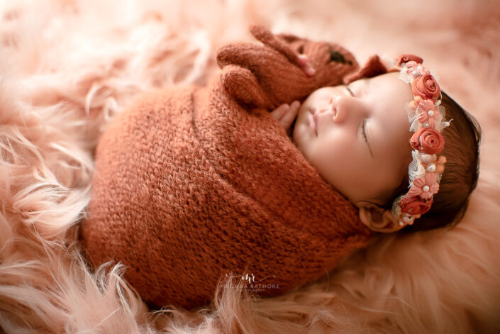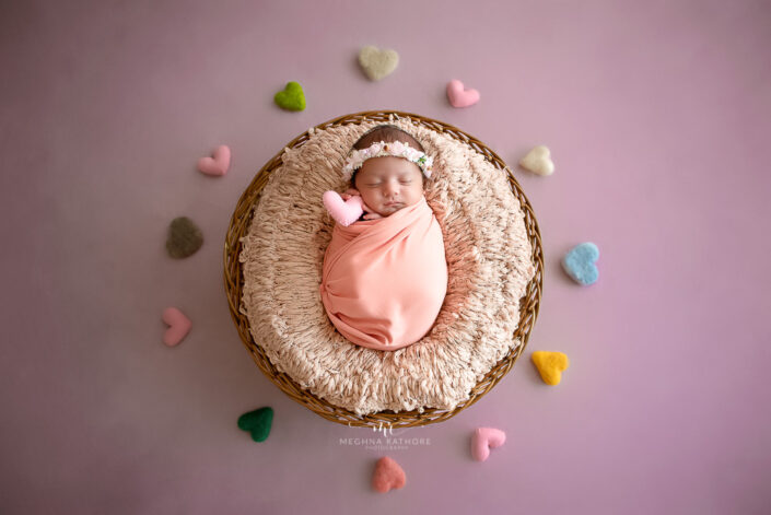 Newborn Album – 26 Days Old Newborn Baby Girl Photoshoot Album With Creative Setups By Meghna Rathore Delhi