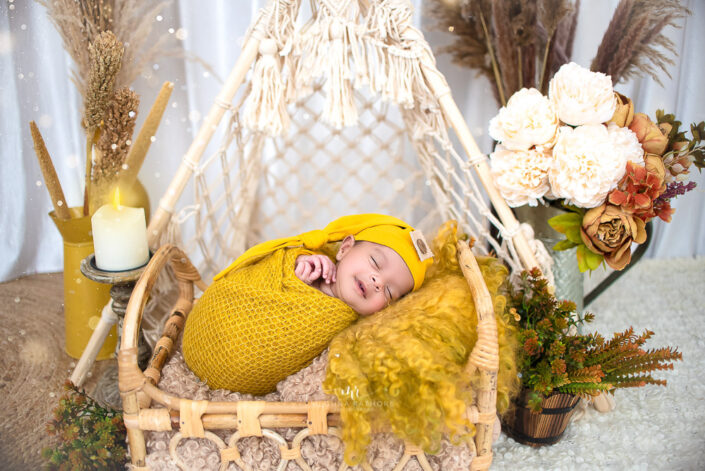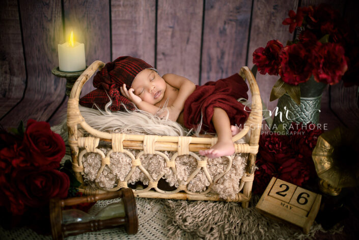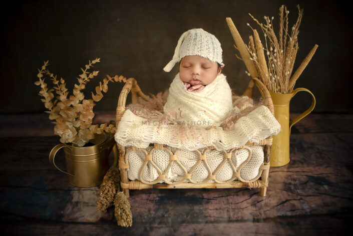 27 – Newborn Baby Photoshoot – Brown Cane Bed Prop