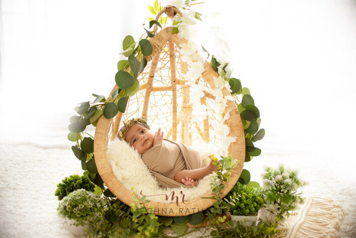 20 – Newborn Baby Photoshoot – Brown Cane Swing Prop