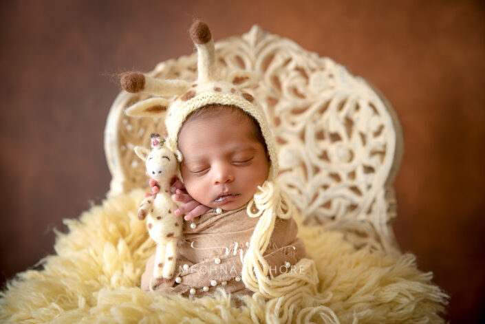 6 – Newborn Baby Photoshoot – White Wooden Carved Chair Prop