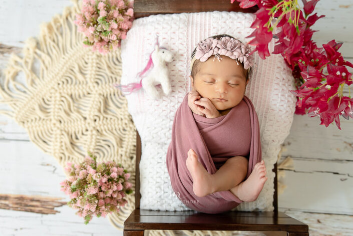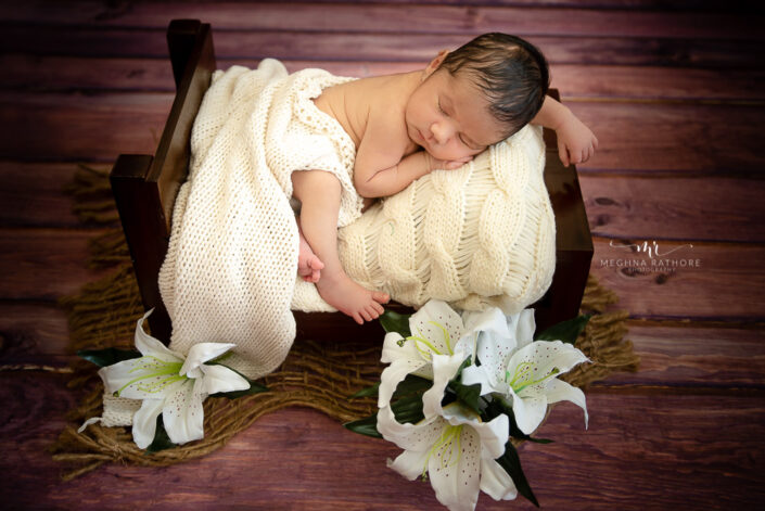 24 – Newborn Baby Photoshoot – Wooden Brown Bed Prop