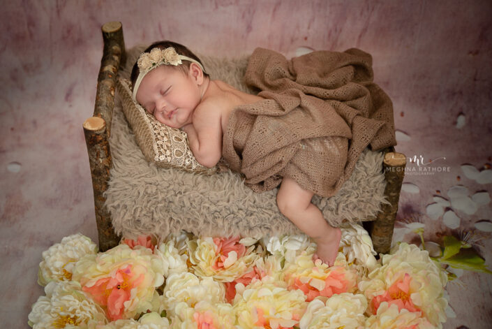 28 – Newborn Baby Photoshoot – Wooden Log Bed Prop