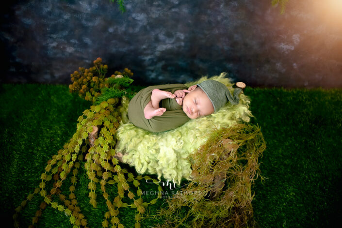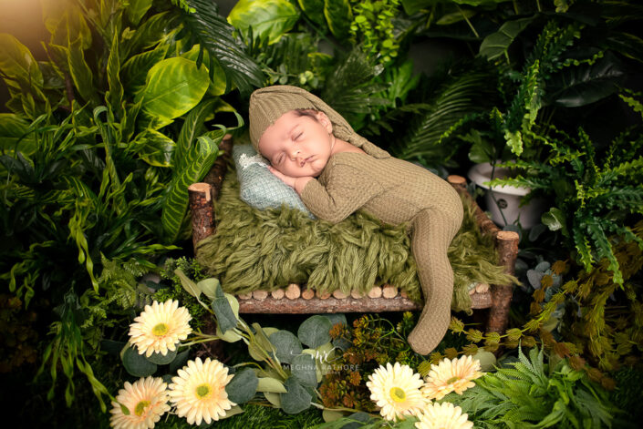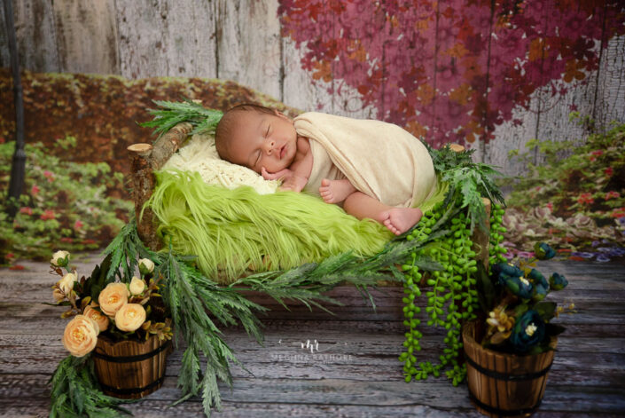 Baby Gallery – 3 Months Baby Girl Photoshoot Using Mermaid, Vintage Greens, Maroons and Blue Florals