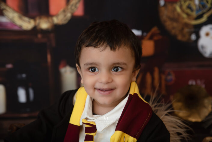 Baby Album – 4 Months Baby Boy Photoshoot in Fall and Harry Potter Theme Including Red and Blue Florals.