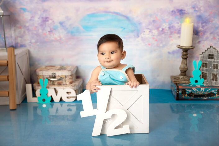 Kid Album – 6 Months Old Baby Boy Sitter Blue Portrait Family Theme Photoshoot by Meghna Rathore Delhi