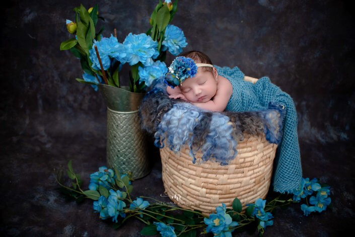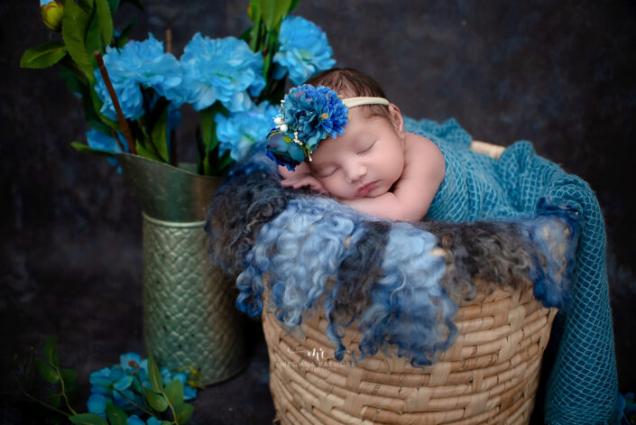 Baby Gallery – 3 Months Baby Girl Photoshoot Using Mermaid, Vintage Greens, Maroons and Blue Florals
