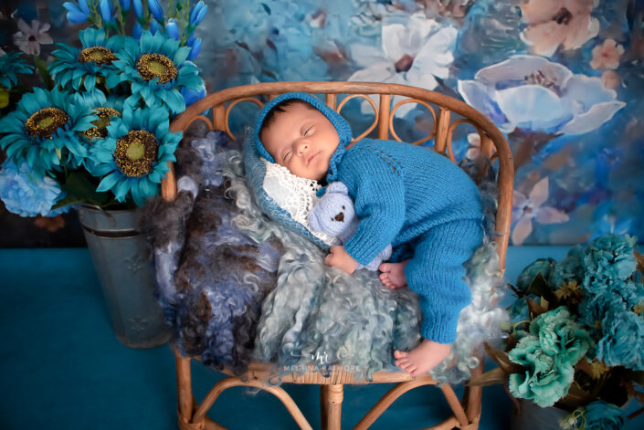 Baby Gallery – 3 Months Baby Girl Photoshoot Using Mermaid, Vintage Greens, Maroons and Blue Florals