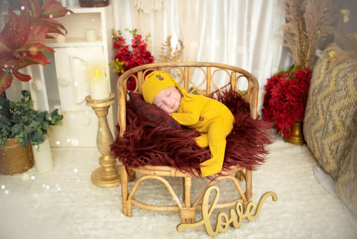 Baby Album – 4 Months Baby Boy Photoshoot in Fall and Harry Potter Theme Including Red and Blue Florals.