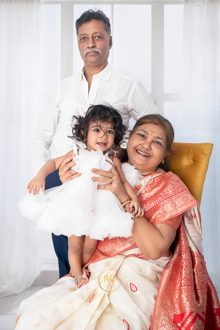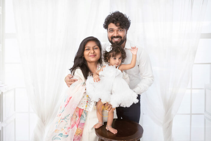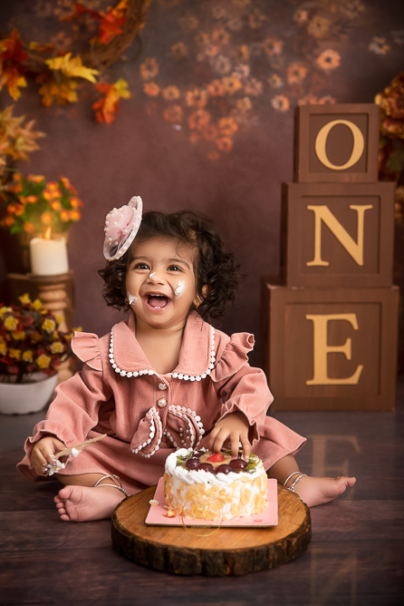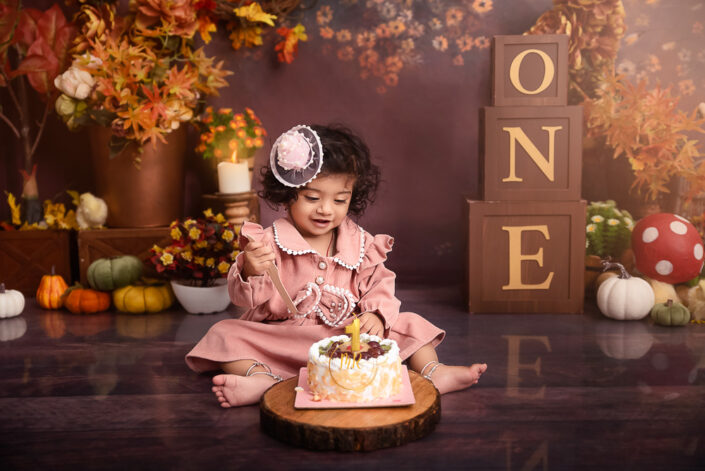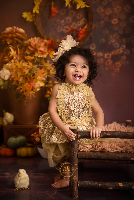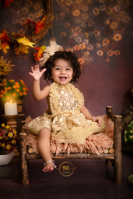 Kid Album – 1 Year Old Baby Girl Pre Birthday Photoshoot in Fall and Boho theme along with Family Portraits