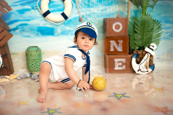 Baby Album – 3.5 Months Baby Photoshoot in Beach, Boss Baby, Vintage and gift Theme and Family Portraits, baby Photoshoot in Delhi Gurugram NCR