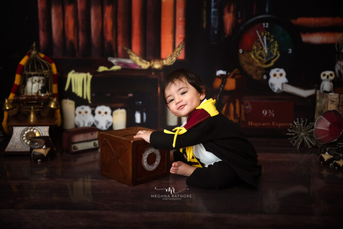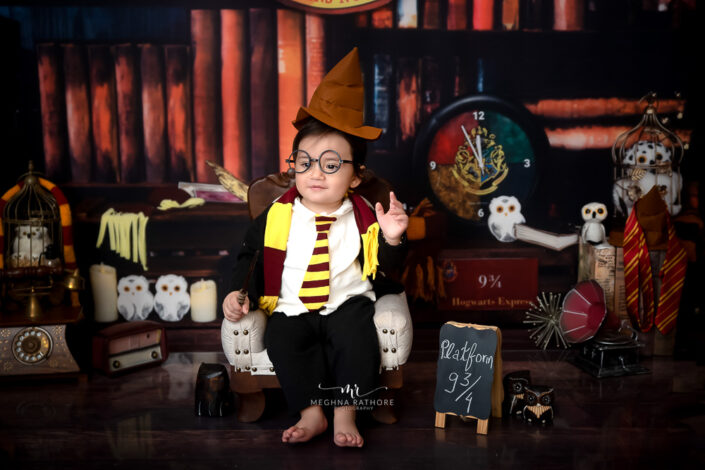 Kids Photoshoot – 1 Year Baby Boy Photoshoot With Boho, Travel and Harry Potter Theme.