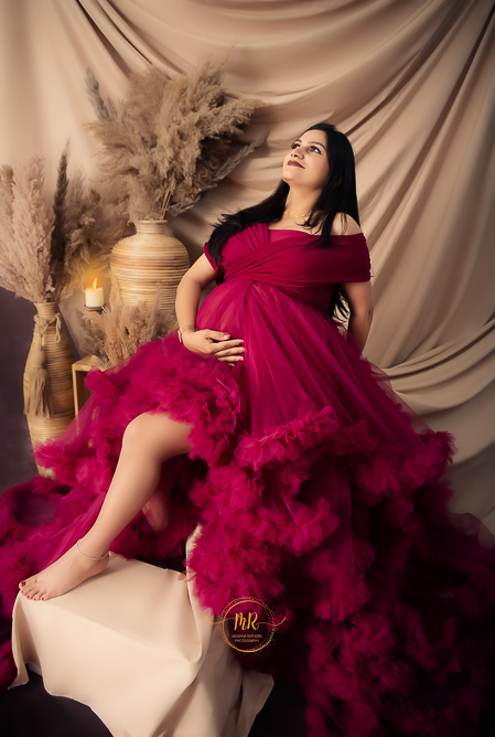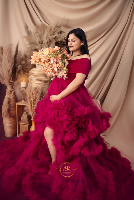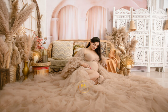 Maternity Album – Gorgeous Mommy To Be Photoshoot In Lifestyle Setup With Brown, Rust and Pink Gown