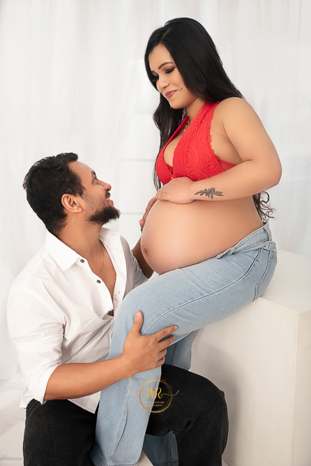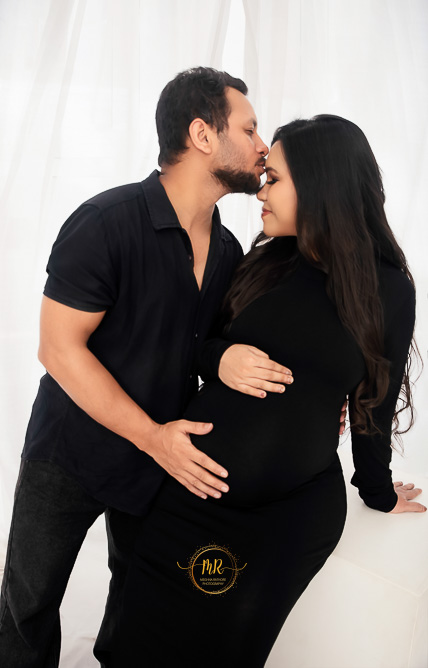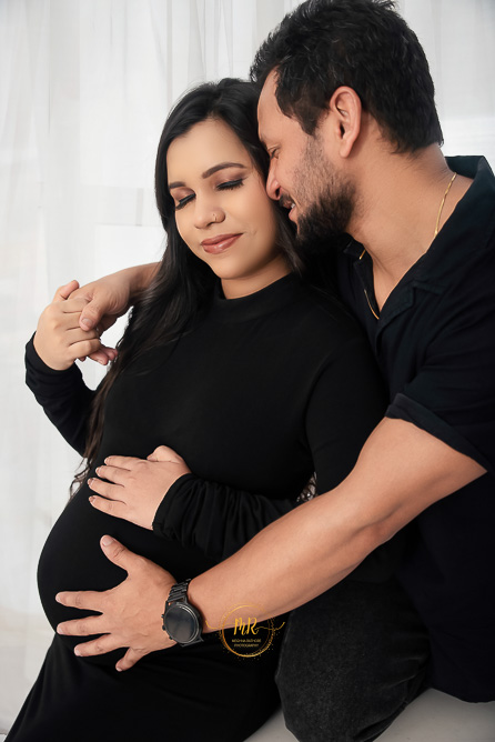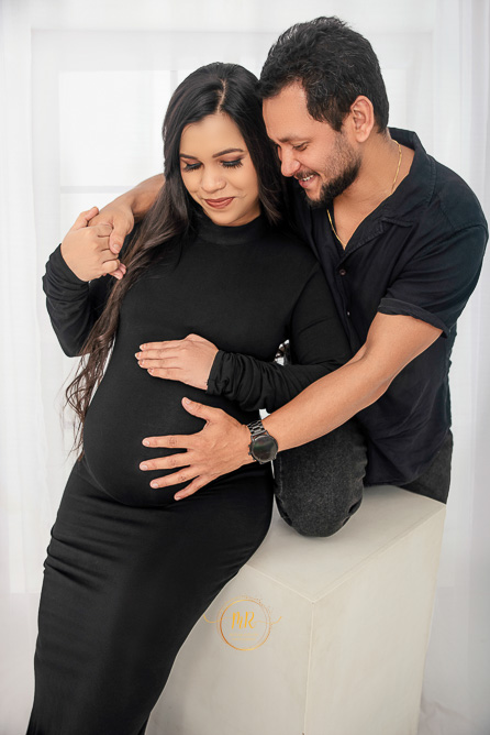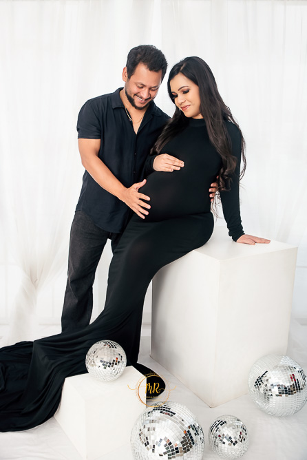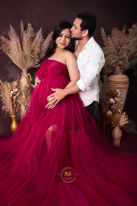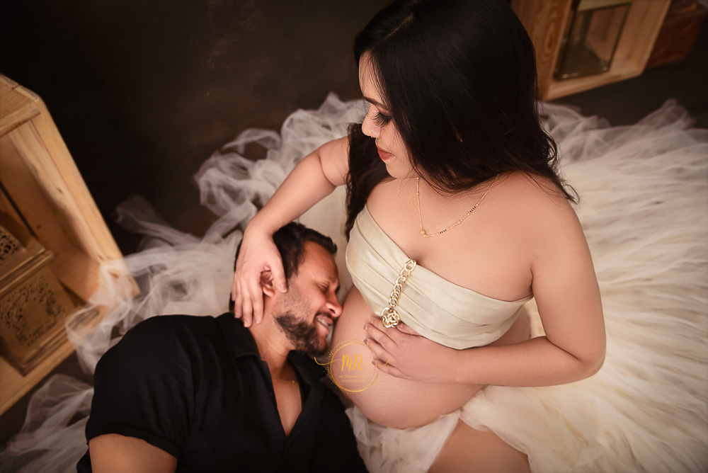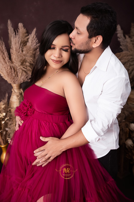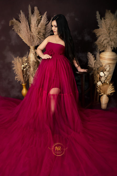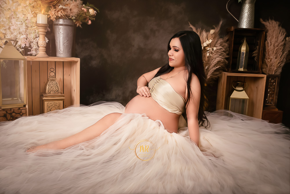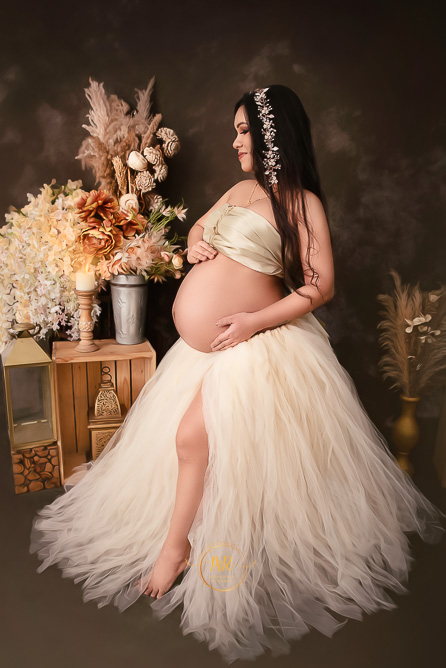 Maternity Gallery – Gorgeous mommy to be in beige skirt pink gown and Bralette
