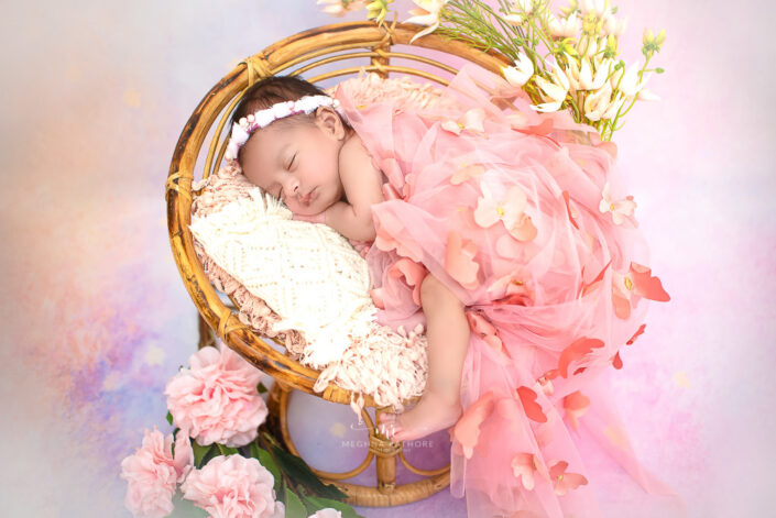 Baby Album – 4 Months Old Baby Girl Photoshoot Princesses Theme Flower Setup By Meghna Rathore Delhi
