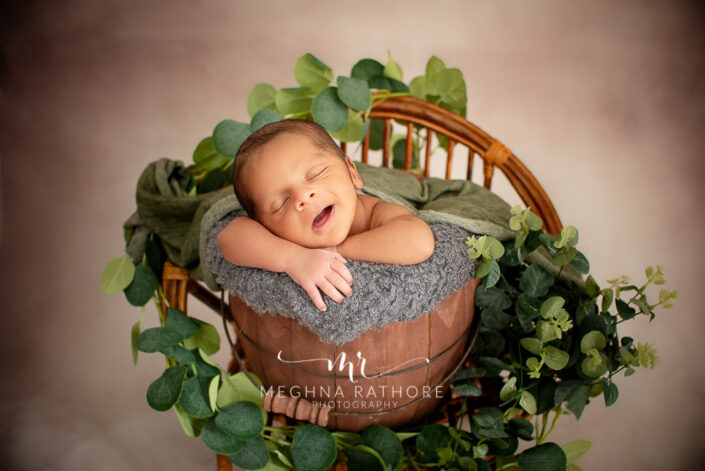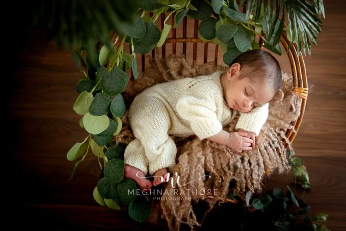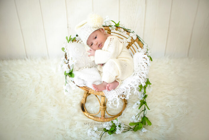 16 – Newborn Baby Photoshoot – Brown Cane Chair Prop