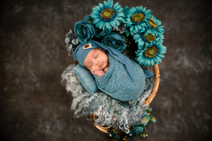 Baby Gallery – 3 Months Baby Girl Photoshoot Using Mermaid, Vintage Greens, Maroons and Blue Florals