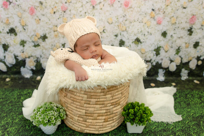 10 – Newborn Baby Photoshoot – Traditional Cane Bucket Prop