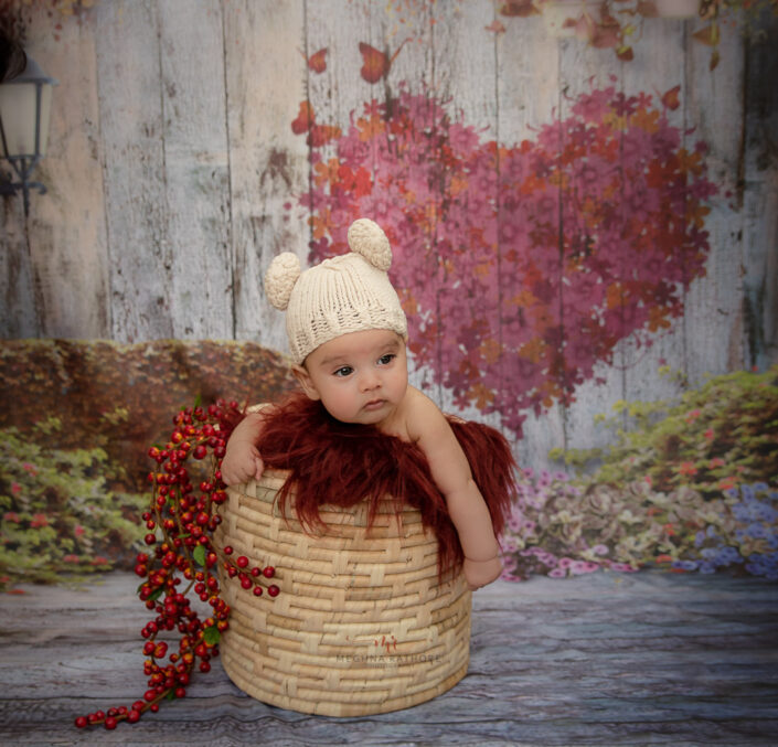 Baby Album – 4 Months Baby Boy Photoshoot in Fall and Harry Potter Theme Including Red and Blue Florals.