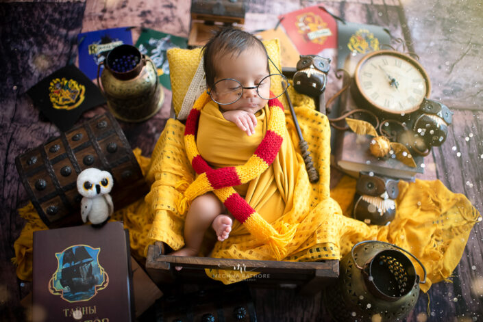 Baby Album – 4 Months Baby Boy Photoshoot in Fall and Harry Potter Theme Including Red and Blue Florals.