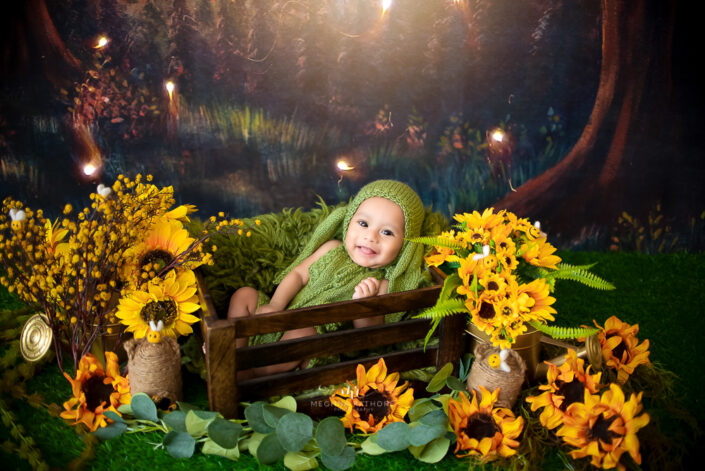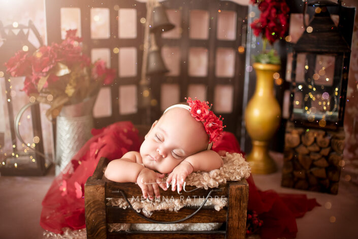 Baby Gallery – 3 Months Baby Girl Photoshoot Using Mermaid, Vintage Greens, Maroons and Blue Florals