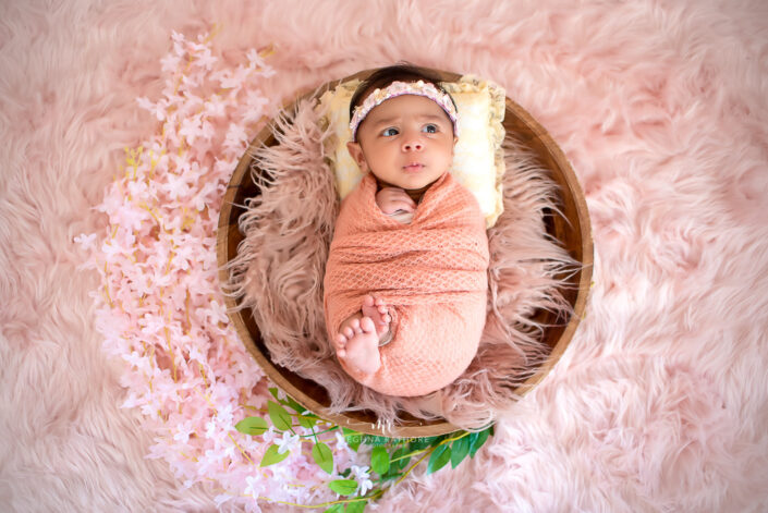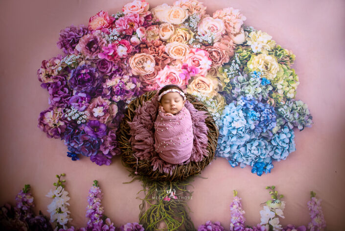 Baby Album – 5 Months Baby Girl Photoshoot in Barbie Theme, Portrait using various floral colors.