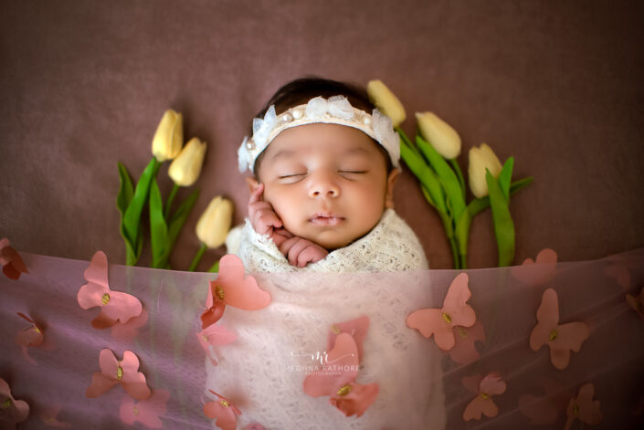 Baby Album – 4 Months Old Baby Girl Photoshoot Princesses Theme Flower Setup By Meghna Rathore Delhi