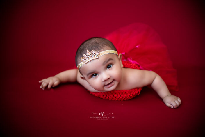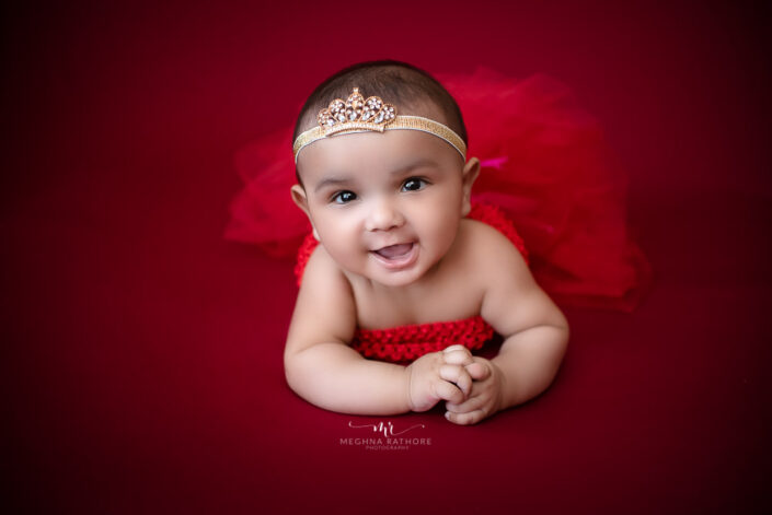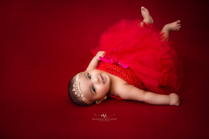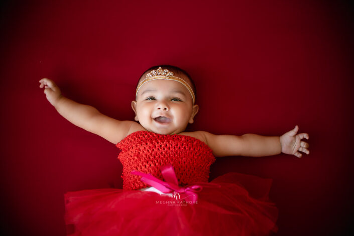 PROFESSIONAL PHOTOSHOOT ALBUM OF 5 MONTHS OLD BABY GIRL IN DRESSES, PROPS, DECORATION, AND PARENTS – GURGAON INDIA